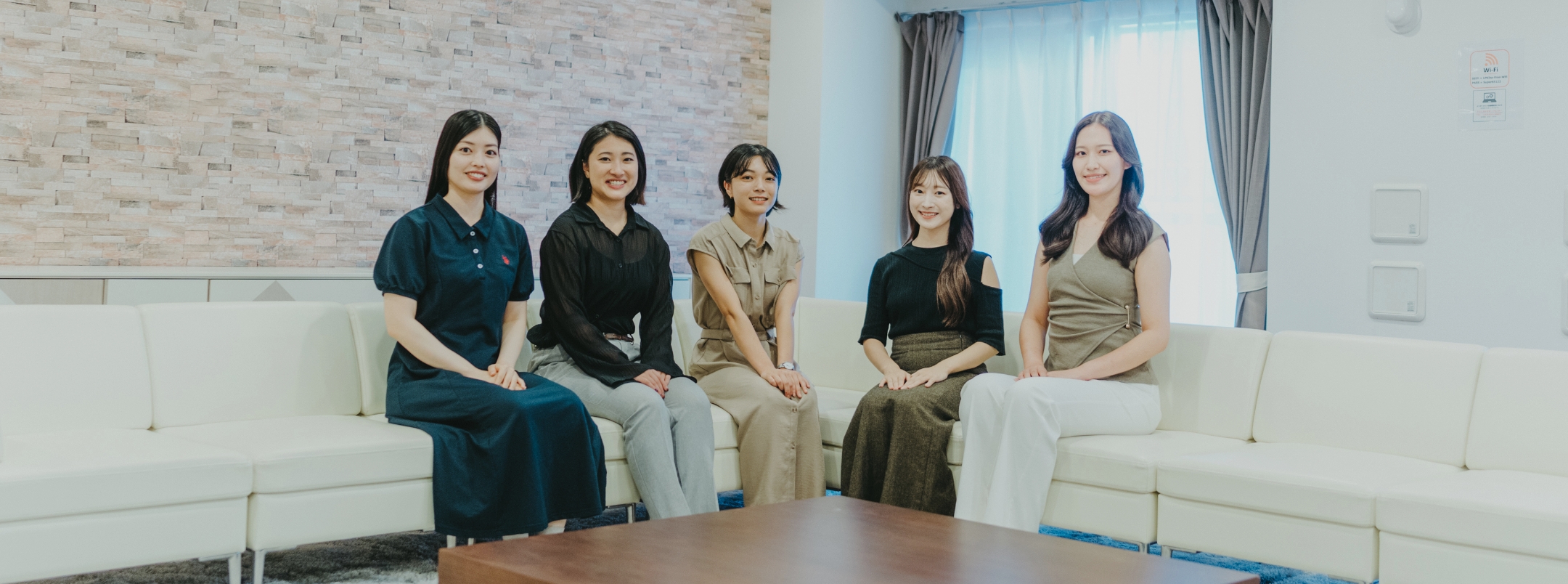 Miyu私は学生時代にも寮に入っていたんですが、まわりは知らない人ばかりで。良くも悪くも、自分だけのペースで過ごしていました。いまは先輩や同期、後輩がまわりにいて、そのおかげでいい影響を受けているなと思います。たとえば食堂で、社内試験に向けて勉強している人を見かける。自分もがんばろうと思う。そんなふうに、誰かの存在がモチベーションになってくれる。