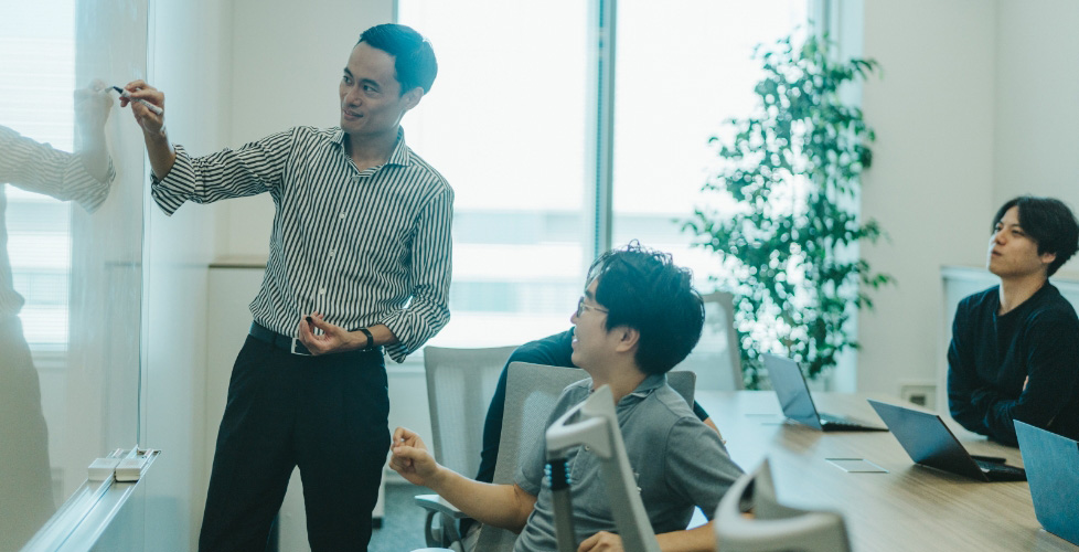 三菱商事は、仕事や成果に非常に厳しい会社です。難しい仕事に、タフな環境下で取り組むことも珍しくない。けれど、一人で孤独に戦うわけではありません。上司や同僚と一丸となって支え合い、仕事を進める風土があります。「皆で議論する」「皆で考える」「皆でもがく」「皆で突破する」——そんな会社だと実感しています。私自身、成果を出せずに苦労した時期もありましたが、上司や同僚の指導とサポートのおかげで、人としても経営に携わる人材としても、成長を実感できています。